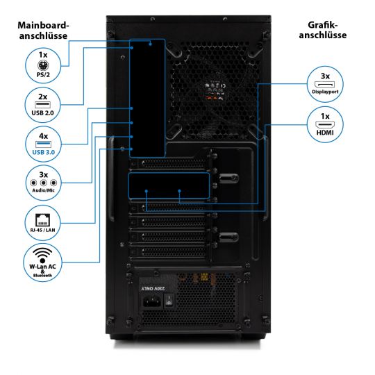 Anschlüsse an der Gehäuserückseite: