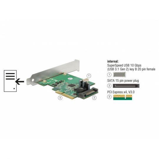 DeLOCK intern 20-Pin Key-B USB 3.1 auf PCIe 3.0 x4