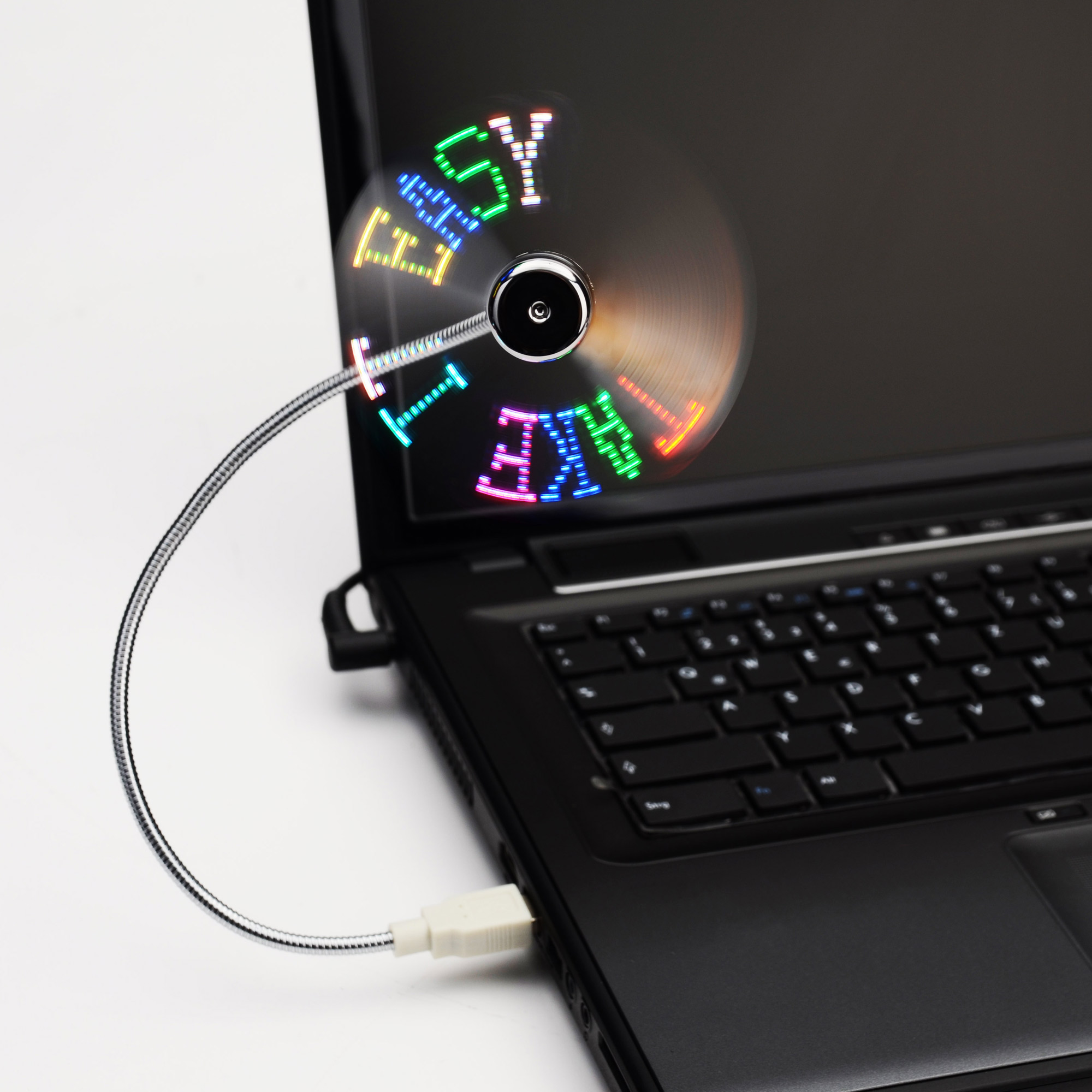 Der ARLT USB Ventilator verfügt über eine frei programmierbare LED-Anzeige, die bei eingeschaltetem Ventilator die eigens eingegebenen kleinen Nachrichten auf den Rotorblättern anzeigt. Motivieren Sie sich selbst, machen Sie sich und ihren Freunden und Kollegen eine Freude oder programmieren Sie einen netten Gruß, wenn Sie den Ventilator beispielsweise zum Geburtstagt verschenken. Dann ist die Überraschung und Freude des Beschenkten vorprogrammiert und ein "einfacher" Ventilator wird zu einem ganz besonderen, persönlichen Gegenstand.