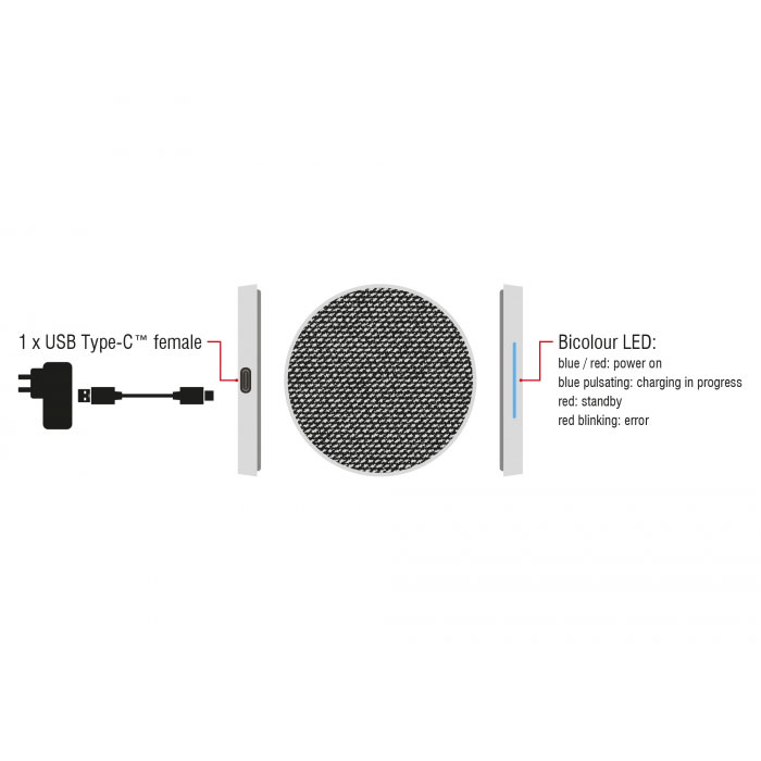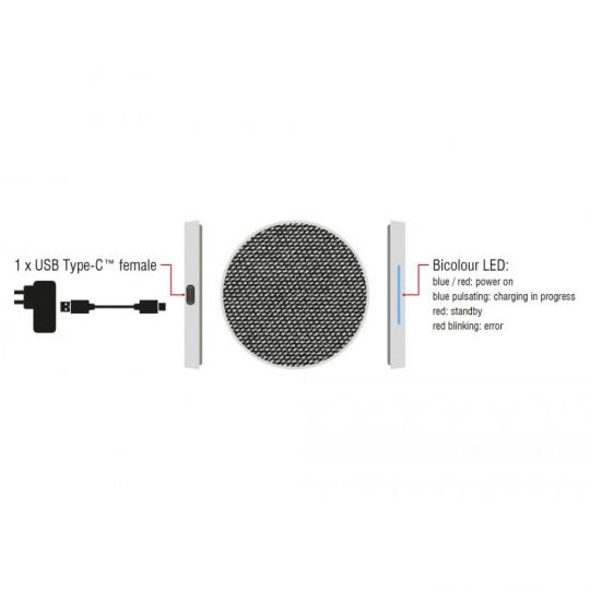 Qi zertifizierten Ladestation, schnelles Laden von bis zu 7,5 / 10 W bei entsprechend ausgestatteten Smartphones, USB Type-C™ Buchse, Stoffüberzug, Rutschfeste Standfläche